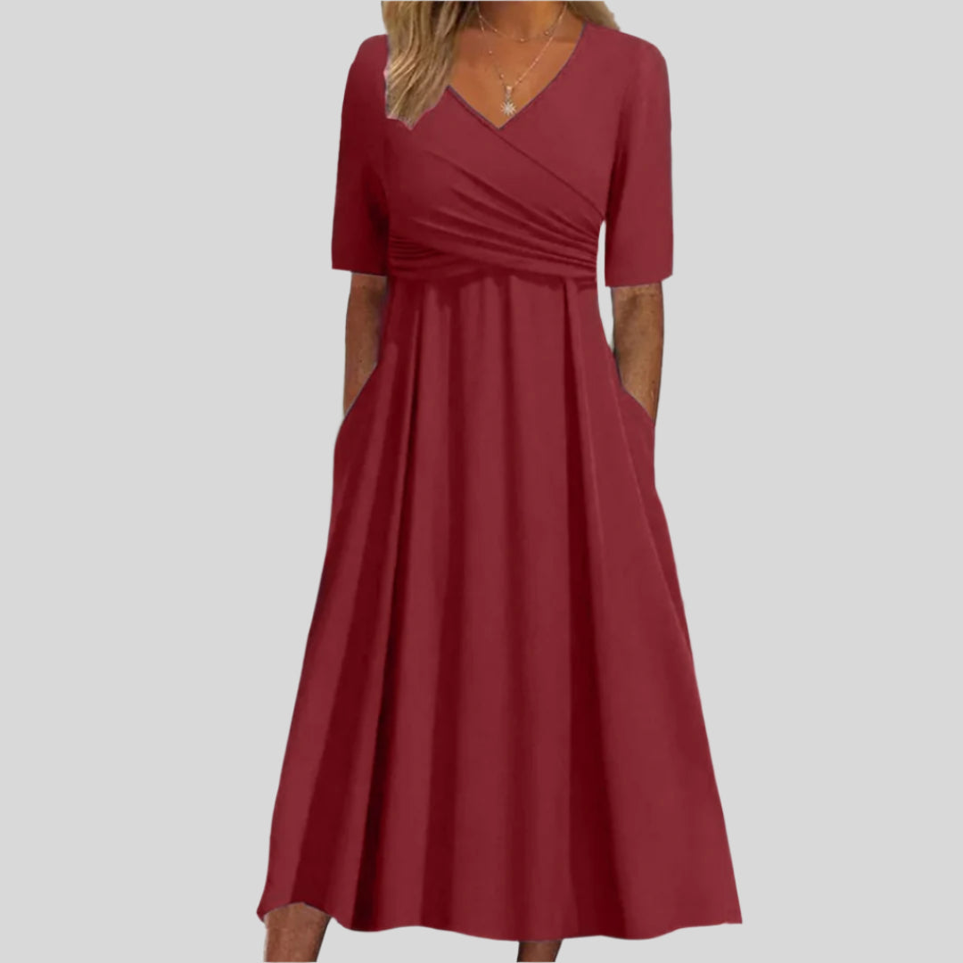 فالنتين | فستان ميدي أنيق بياقة على شكل حرف V