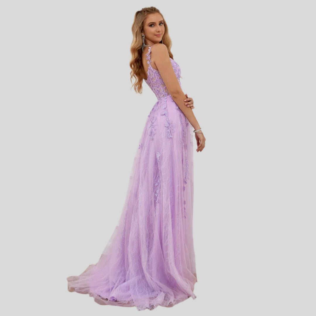 رانيا | فستان فاخر بياقة على شكل V وأكمام طويلة