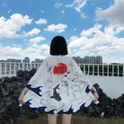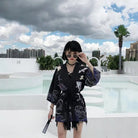 هذه السترة الكيمونو للنساء مزينة بطبعة راقية تمثل الطيور اليابانية، رموز التناغم والنعمة. تصميمها الواسع والسلس يضمن راحة مثالية، سواء لمظهر غير رسمي أو ملابس أكثر أناقة.