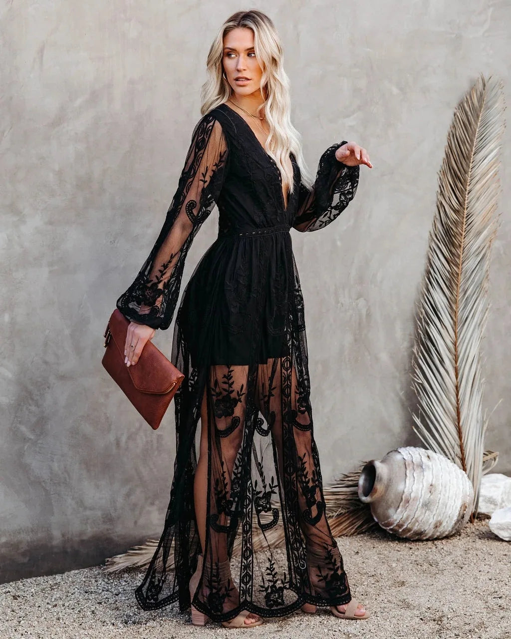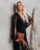 تجذب هذه الفستان الأسود الطويل المطرز بتفاصيلها الرقيقة وفتحة العنق على شكل V التي تبرز جمال الرأس. تصميمها السلس يطيل القامة ويبرز الأنوثة بلمسة عصرية. مثالية لأيام الصيف وكذلك للمناسبات الأنيقة، تجمع بين الراحة والرقي في جميع الظروف.
