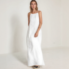 Denne lange ærmeløse kjole er designet til at kombinere komfort og elegance i sommersæsonen. Dens flydende snit følger bevægelserne med ynde, mens dens enkle design giver stor stilfrihed. Perfekt til at slentre på ferie, nyde en dag i byen eller deltage i et sommerarrangement.