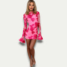 Denne mellemlange kjole forfører med sin delikate blomsterbroderi og let gennemsigtige lange ærmer. Den åbne ryg tilføjer en diskret sensualitet, perfekt til særlige lejligheder. Fås i flere farver, den tilpasser sig alle dine ønsker med elegance.