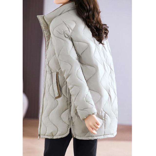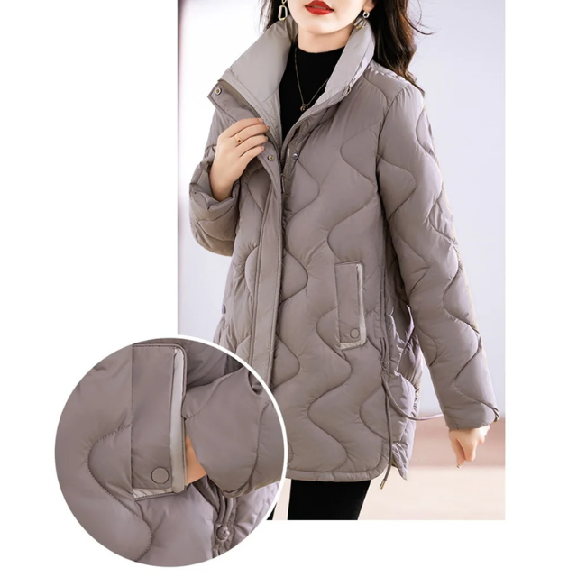 Denne model kombinerer komfort og raffinement for at møde den kolde sæson med stil. Dens moderne snit og høje krave sikrer et elegant udseende, samtidig med at den effektivt beskytter mod vinden. Let, men varm, bliver denne jakke et must-have i vintergarderoben, lige så praktisk som æstetisk.