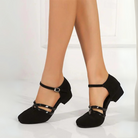 Nämä leveäkantaiset suljetut kengät, joissa on säädettävä hihna, yhdistävät hienostuneisuuden ja mukavuuden arjessa. Niiden tyylikäs muotoilu korostaa jokaista asua, kun taas pehmustettu pohja takaa kestävän hyvinvoinnin tunteen.