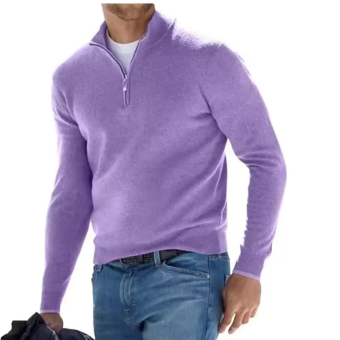 Zacharie | Fél-Zip Pulóver Férfi — Magas Gallér és Hosszú Ujjú