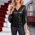 このブラウスは、洗練されたVネックと優雅に落ちるフレアスリーブでシルエットを引き立てます。きらめくスパンコールがあなたのルックにさりげないグラマラスなタッチを加えます。夜の外出や特別な occasion に最適で、洗練されたスタイルと絶対的な快適さを兼ね備えています。
