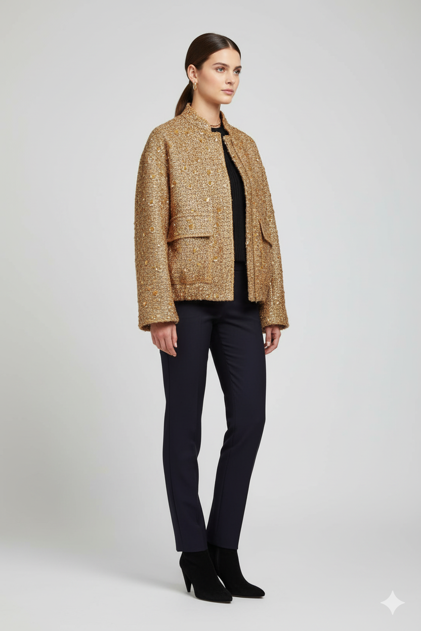 Bérénice | Korte Gulljakke — Glitrende Eleganse & Festlig Sjarm