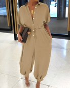 Această salopetă cu brâu oferă un stil modern și o croială confortabilă. Designul său cu nasturi și picioarele strâmte aduc o notă trendy, ideală pentru ieșirile sau zilele tale relaxate.
