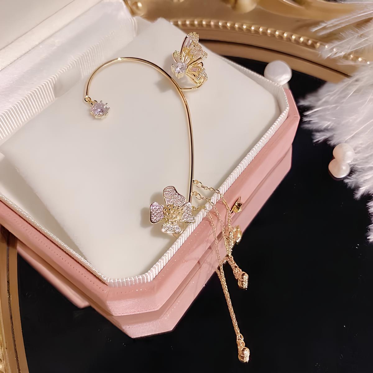 Alexandra | Náušnice Kvetinové s Trblietavým Motýľom